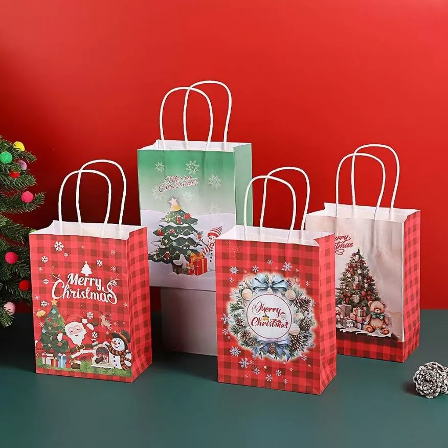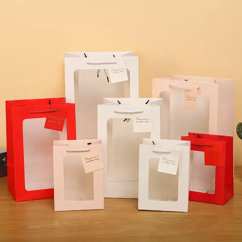 Questa borsa regalo ha un aspetto e una sensazione premium. Usiamo cartone bianco spesso o carta kraft, che sembra robusto e non si deforma né perde la forma quando ci metti dentro gli oggetti. I manici sono realizzati in resistente corda di cotone, annodata saldamente, quindi non devi preoccuparti che si rompano, anche con oggetti più pesanti.