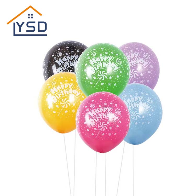 I palloncini in lattice stampati di buon compleanno sono palloncini con testo di buon compleanno o altri elementi legati al compleanno stampati su di loro. I palloncini di lattice prodotti da YSD® soddisfano gli standard pertinenti e si concentrano sulla protezione ambientale.