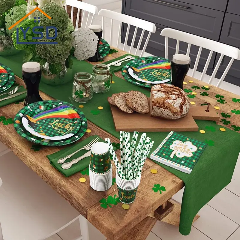 Ogni anno a metà marzo l'atmosfera verde del giorno di San Patrizio si intensifica. Che si tratti di un evento aziendale o di una riunione di famiglia, è fondamentale fare scorta di articoli festivi. Il set di stoviglie usa e getta per il giorno di San Patrizio di YSD è una scelta popolare. Caratterizzato dal classico verde del giorno di San Patrizio, questo set presenta motivi festivi come quadrifogli e folletti, catturando immediatamente lo spirito festivo. Che il proprietario di un ristorante stia acquistando grandi quantità per un ricevimento con un cliente o che una famiglia stia facendo scorta per una festa, questo set è perfetto per ogni occasione. YSD offre anche una fornitura affidabile, garantendo una consegna rapida dopo aver effettuato l'ordine, eliminando la necessità di ritardi inutili.