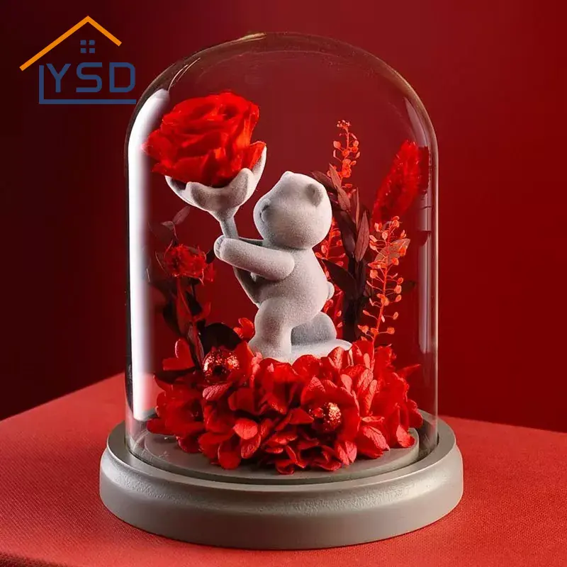 Ancora più importante, la fabbrica YSD offre fiori personalizzati con cupola di vetro per San Valentino, soddisfacendo pienamente le esigenze individuali degli acquirenti. Se hai il tuo marchio e desideri differenziare il tuo prodotto, possiamo stampare il logo del tuo negozio o il nome del marchio sulla cupola di vetro oppure incidere un messaggio unico sulla base. Se stai cercando di creare prodotti differenziati per diversi gruppi di clienti, come disegni di cartoni animati per i giovani o cupole di vetro dorato per clienti di fascia alta, possiamo anche adattare il design alle tue esigenze. Gli ordini personalizzati offrono ordini minimi flessibili. Non è necessario collocare grandi quantità; sono possibili anche piccole prove. Inoltre, i tempi di consegna brevi ti permettono di non perdere la stagione dei saldi di San Valentino, permettendoti di ottenere un prodotto unico e diventare più competitivo sul mercato.