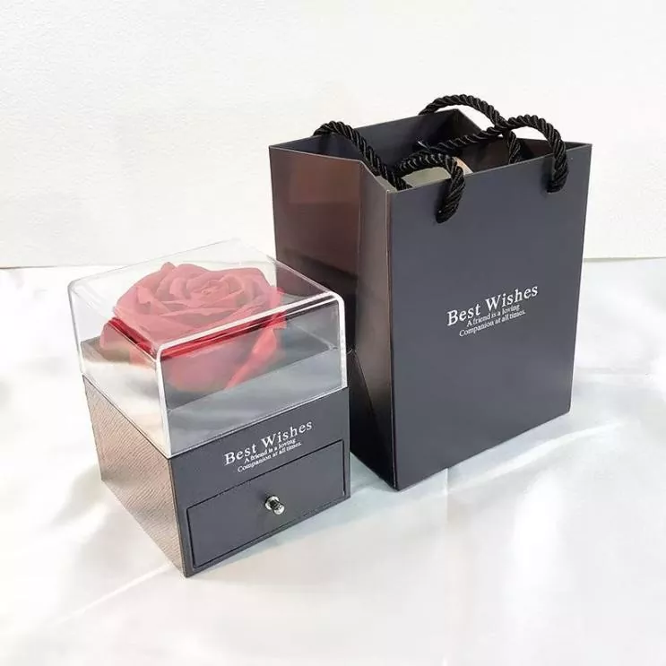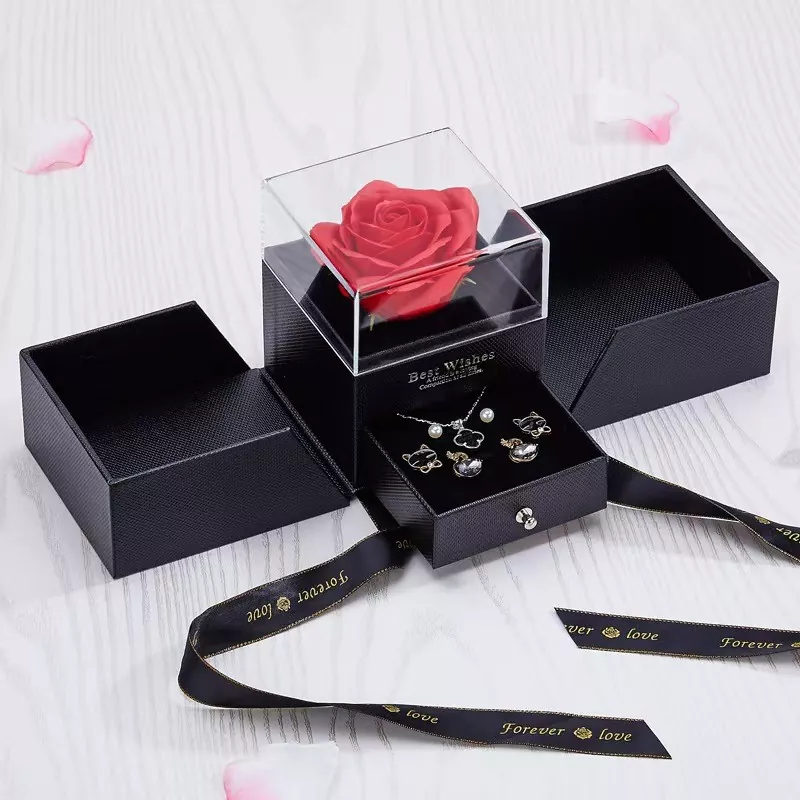 Ancora più importante, questo "portagioie di San Valentino" è personalizzabile per soddisfare le diverse esigenze di acquisto. Innanzitutto, l'esterno consente la personalizzazione. Se sei un imprenditore e desideri stampare il logo del tuo negozio, le informazioni di contatto o uno slogan di San Valentino sulla scocca in acrilico, la fabbrica può farlo e il disegno stampato è chiaro e resistente allo sbiadimento. Se vuoi cambiare il colore o la quantità dei fiori di sapone, ad esempio, passando al rosso intenso o aggiungendo qualche margherita, puoi modificare anche questo. Successivamente, offriamo dimensioni personalizzate. Se hai gioielli di dimensioni specifiche, come un braccialetto più lungo o un pendente più grande che non entrano in una scatola normale, la fabbrica può adattare le dimensioni della scatola alle dimensioni dei gioielli, assicurandosi che si adattino in modo sicuro. Infine, offriamo imballaggi personalizzati. Se acquisti in grandi quantità come regalo, la fabbrica può anche fornire borse, buste regalo e persino imballaggi singoli secondo le tue specifiche, risparmiandoti la fatica di dover trovare l'imballaggio da solo. Anche il processo di personalizzazione è rapido; gli ordini standard possono essere consegnati entro una settimana e gli ordini urgenti possono essere accelerati, rendendo l'acquisto un'esperienza senza preoccupazioni.