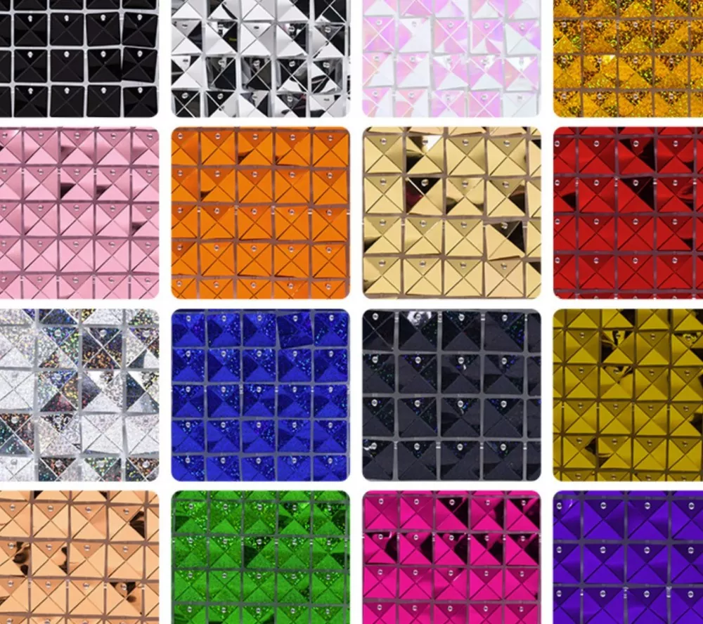 1. Le specifiche della parete luccicante sono varie, di solito 30 × 30 cm. Ogni scheda è composta da 100 piccoli paillettes rotondi. I paillettes sono di vari colori e abbaglianti. La nostra azienda può anche fornire servizi personalizzati di colore e dimensioni.